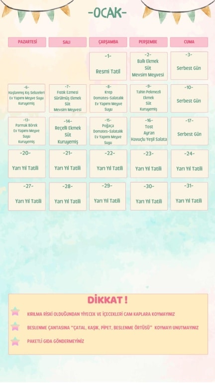 Beslenme Listesi Ocak