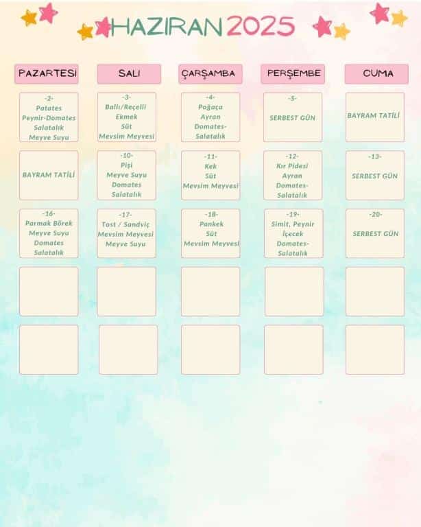 Beslenme Listesi Haziran